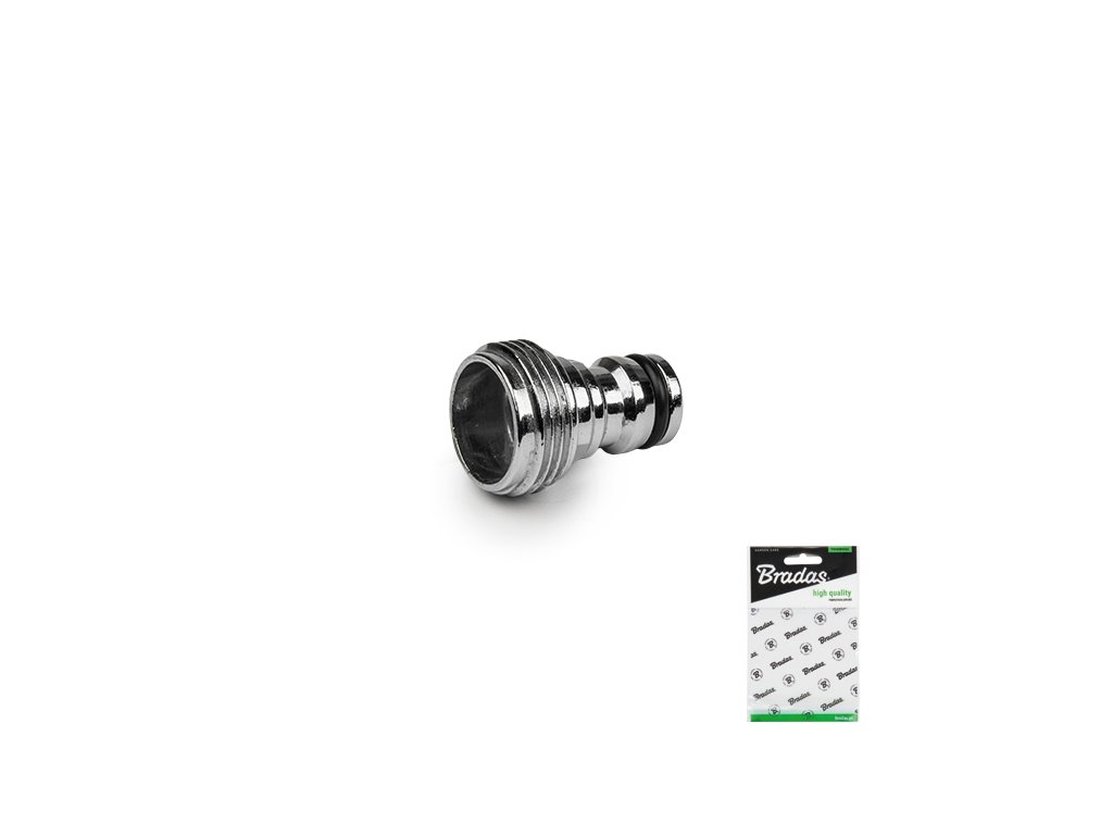 Šroubení (adaptér) ZINK CHROM pro zavlažovací zařízení s vnějším závitem 3/4". Vyrobeno z vysoce kvalitních slitin zinku, plně pochromováno.