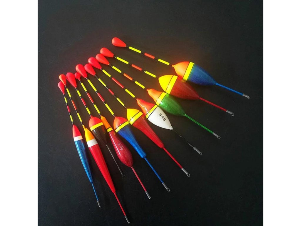 Sada 10 plovoucích plováků různých hmotností. Ideální pro rybaření. Každý z plováků je návnada ušitá na míru preferencím jiné ryby. Živé barvy přitahují pozornost ryb a zvyšují efektivitu rybolovu.