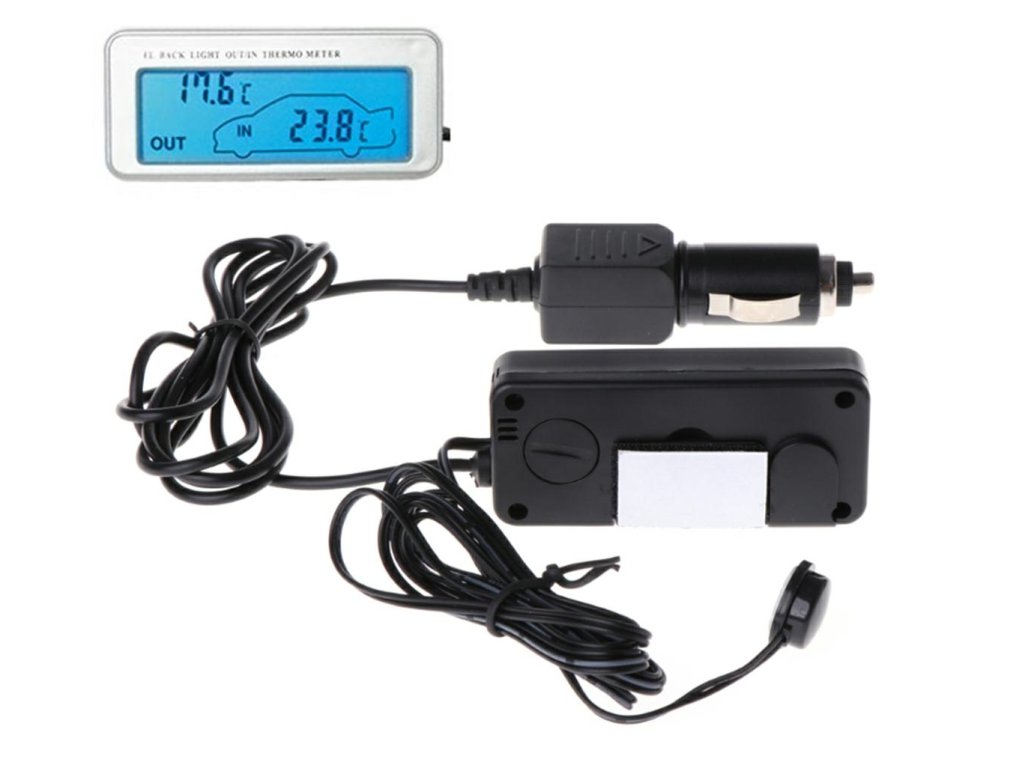 Zcela nový vysoce kvalitní elektronický teploměr do auta s velkým LCD displejem a modrým podsvícením! Umožňuje měřit vnější a vnitřní teplotu díky dvěma nezávislým teplotním senzorům!