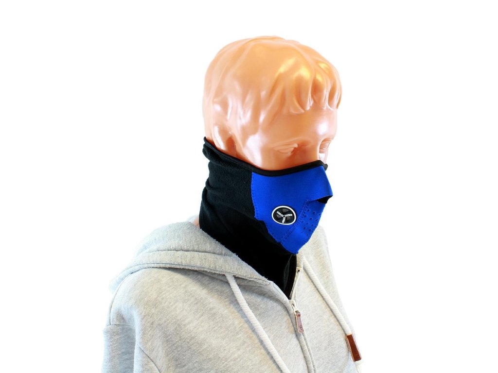 - Maska zakrývá krk a obličej až do úrovně tváří, má otvor v blízkosti nosních dírek a ventilační otvor na straně úst - nezakrývá vpusťte studený vzduch přímo do krku.