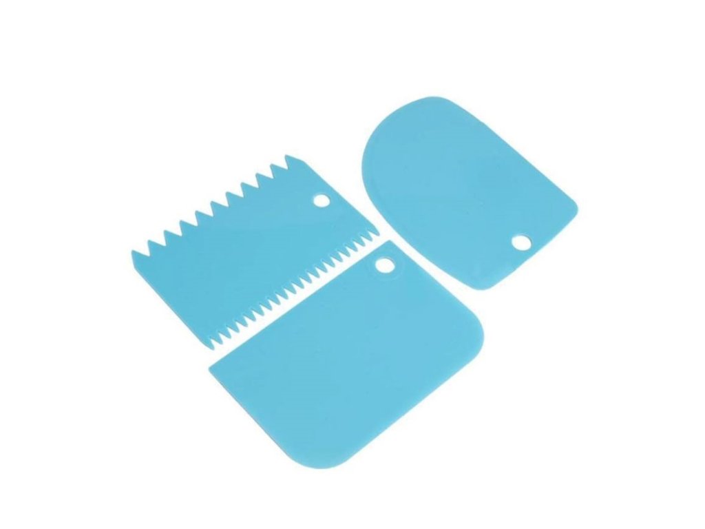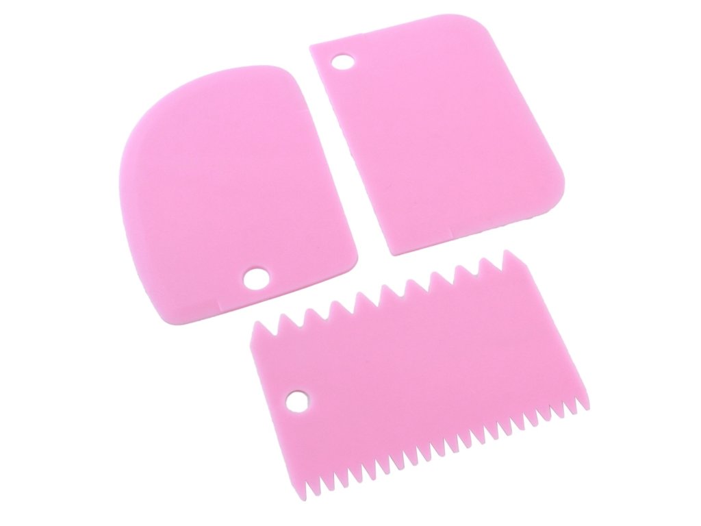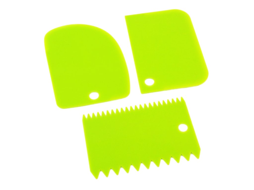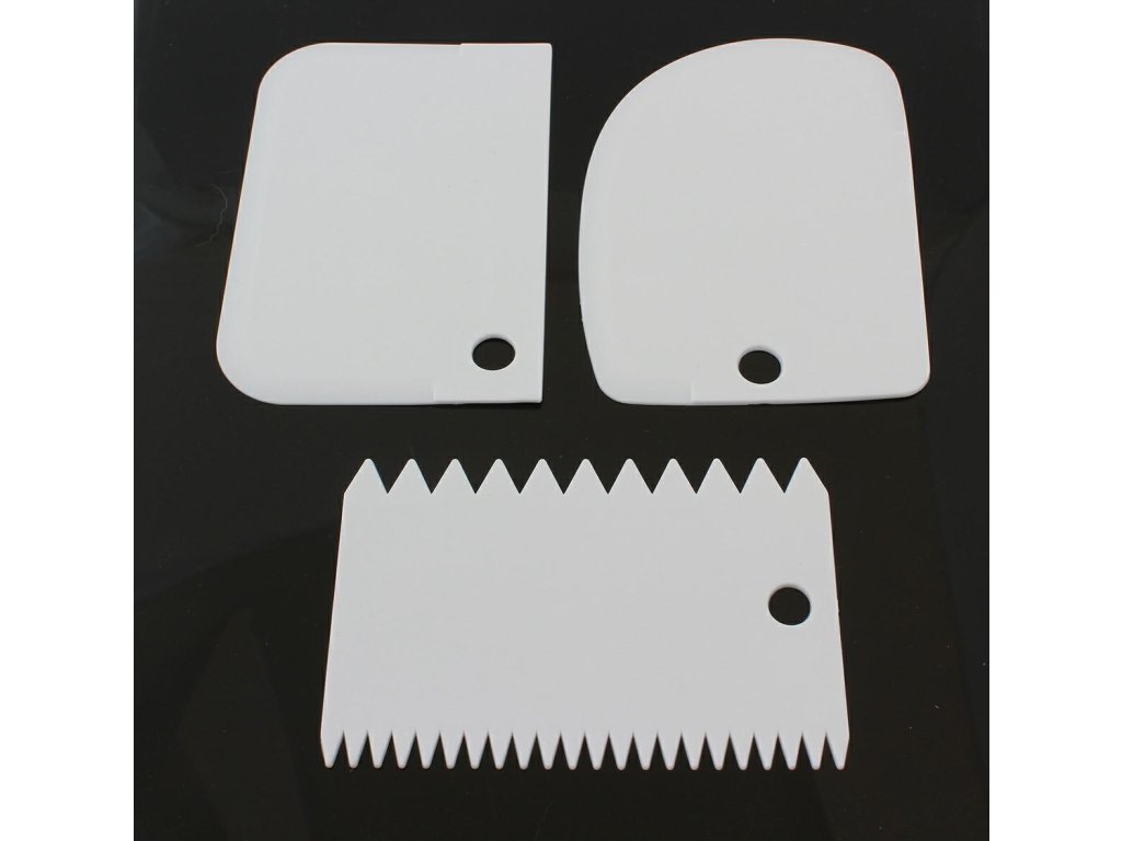 Sada 3 lopatek / lopatek na vykrajování dortů a dortů. Výborně se hodí i na zdobení cukrářských výrobků. Různorodý tvar lopatek usnadňuje práci. Vyrobeno z pevného plastu, který zajistí dlouhé používání.