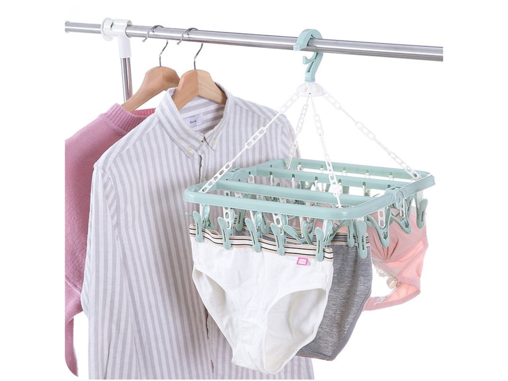 Pohodlný, kompaktní sušák na spodní prádlo a ponožky. Vybaveno praktickým háčkem, který umožňuje zavěšení na věšáky a zábradlí. Má až 32 spon / háčků v několika řadách, což usnadňuje věšení prádla ve stísněných prostorách. Solidní zpracování zajistí dlouhé a bezproblémové používání.