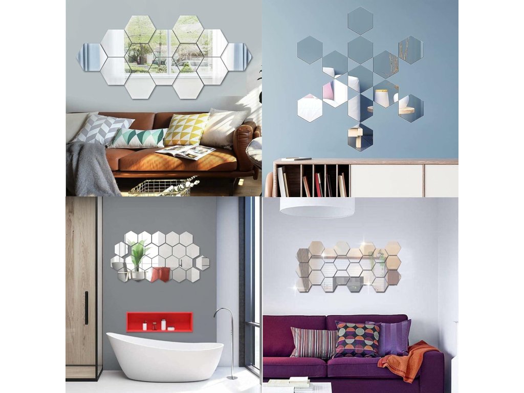 AG543J ZRCADLOVÉ SAMOLEPKY ŠESTIHRAN 12x11CM 12 KS