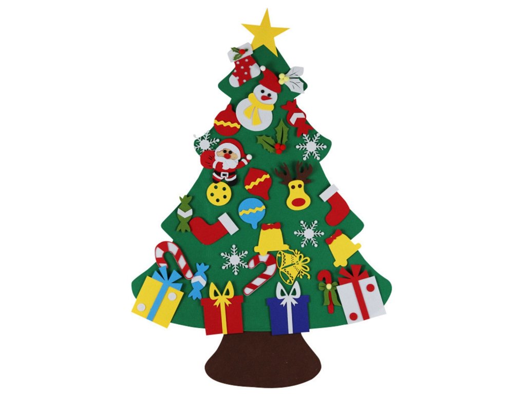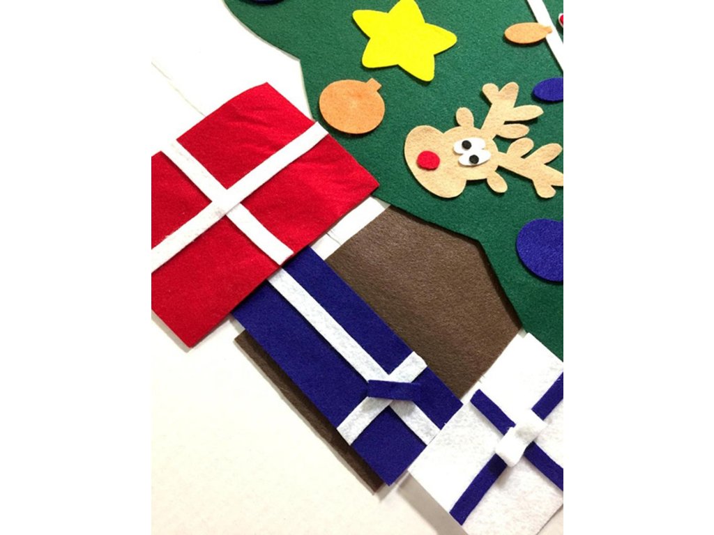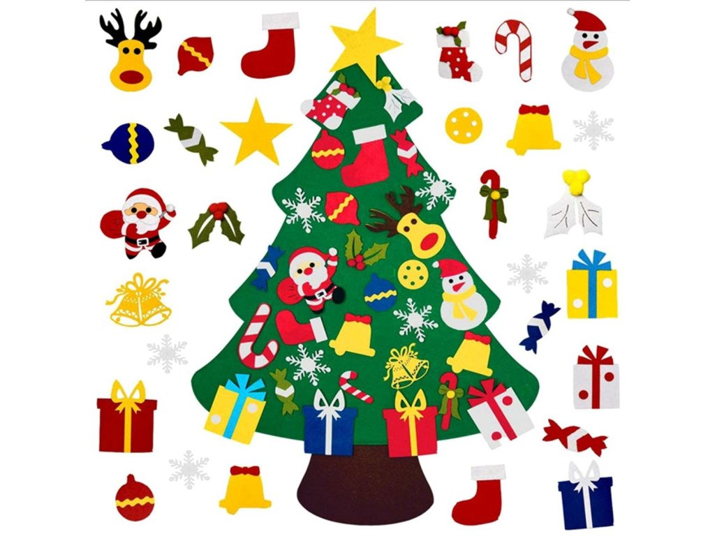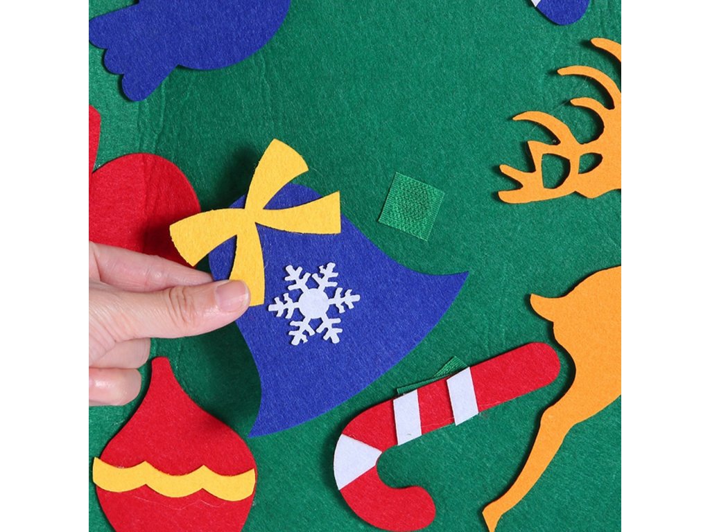 Plstěný vánoční stromek pro děti. Dokonalá hračka, která rozvíjí kreativitu těch nejmenších. Vybaveno 30 odnímatelnými ozdobami, které lze připevnit a oddělit kdekoli na vánočním stromku. Vyrobeno z lehkého a bezpečného materiálu (filc). Speciální věšák umožňuje zavěšení na zeď.