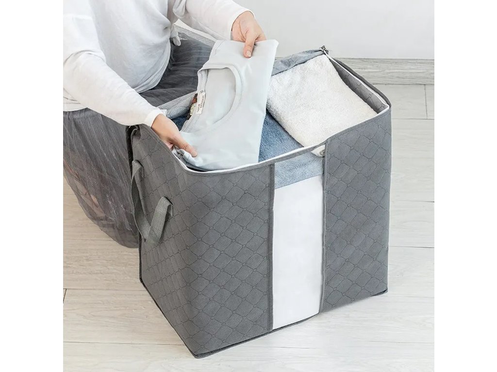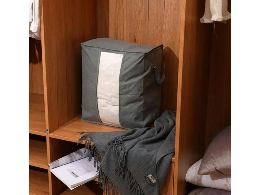Kompaktní povlak na ložní prádlo. Mimořádně praktický způsob uložení oblečení a lůžkovin. Organizátor používá zip a pohodlným madlem na přenášení. Průhledné okno umožňuje rychlou kontrolu nad oblastí. V případě potřeby ji lze použítv způsobu.