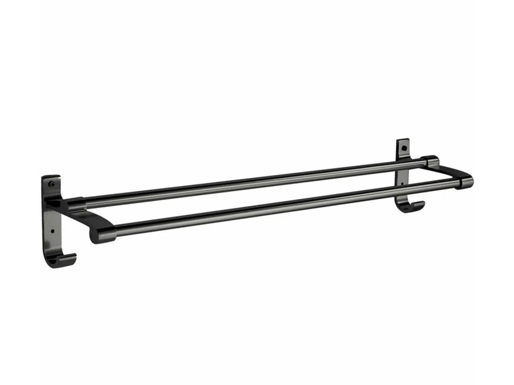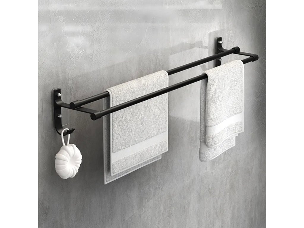 Kovový koupelnový věšák ve stylu loft. Vyrobeno z masivního hliníku, práškově lakováno v matné černé barvě. Výrobek je odolný proti vlhkosti a oděru, což zajišťuje dlouhé a bezproblémové používání. Držák má dvě ramena pro zavěšení ručníků. Standardní šroubová sestava (včetně všech prvků).