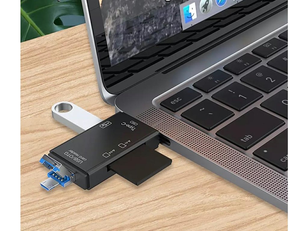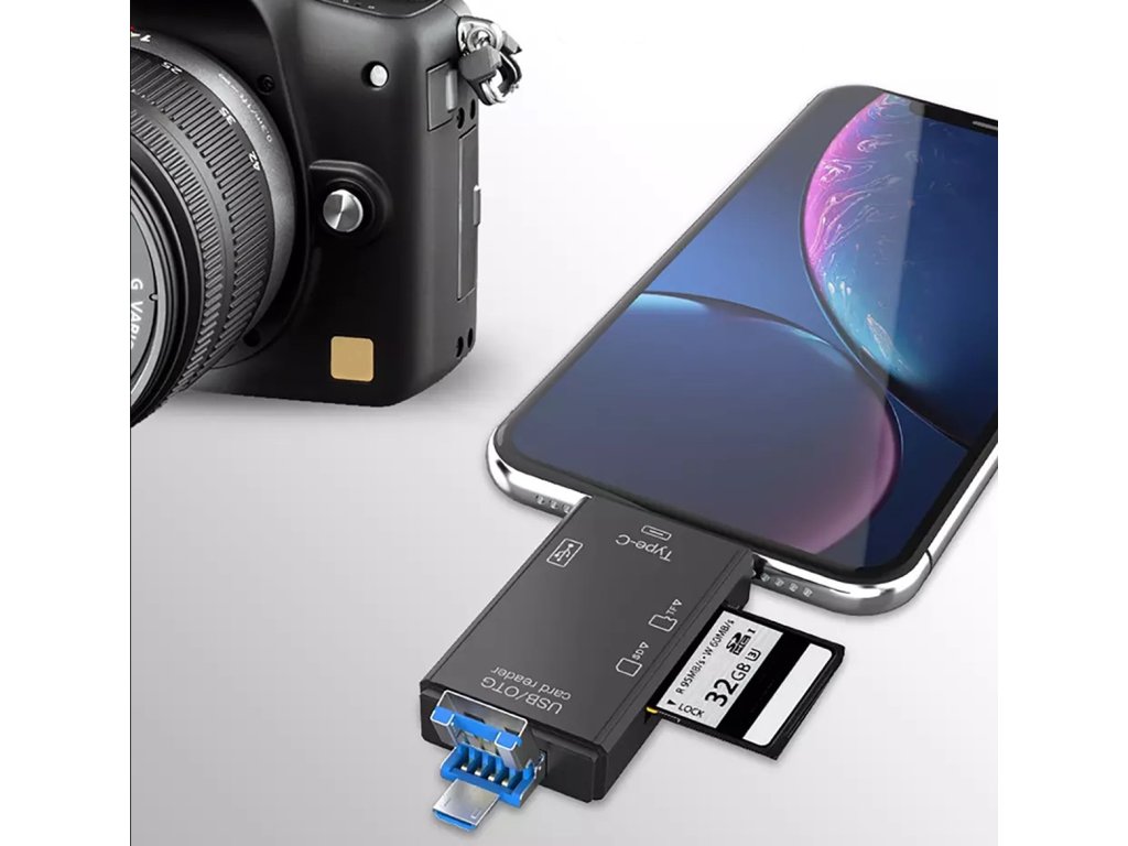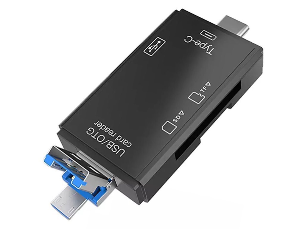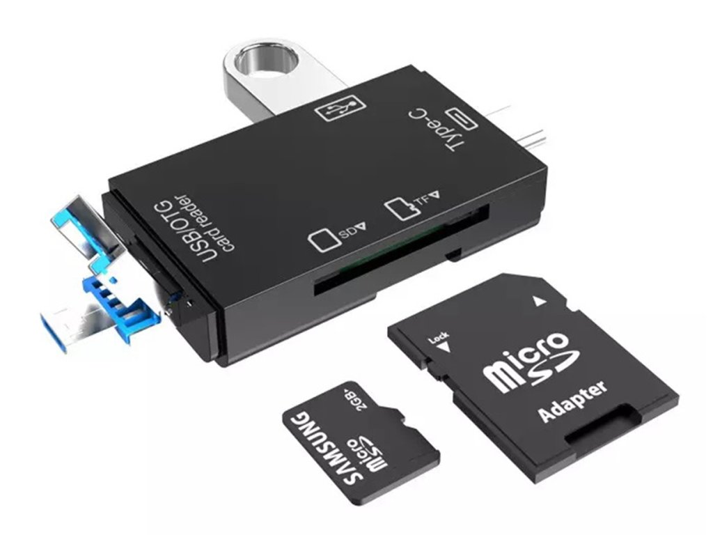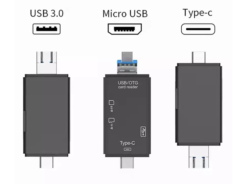 Univerzální čtečka paměťových karet připojená k počítači přes vestavěný USB port. Čtečka umožňuje připojení k micro-USB nebo USB-C USB portu bez použití dalších adaptérů! Umožňuje číst karty rychlostí vhodnou pro USB 3.0 a s kapacitou až 128 GB. Díky velkému množství zástrček jej můžete připojit v podstatě k jakémukoli elektronickému zařízení (počítač, telefon, tablet). Je plně kompatibilní s funkcí OTG.
