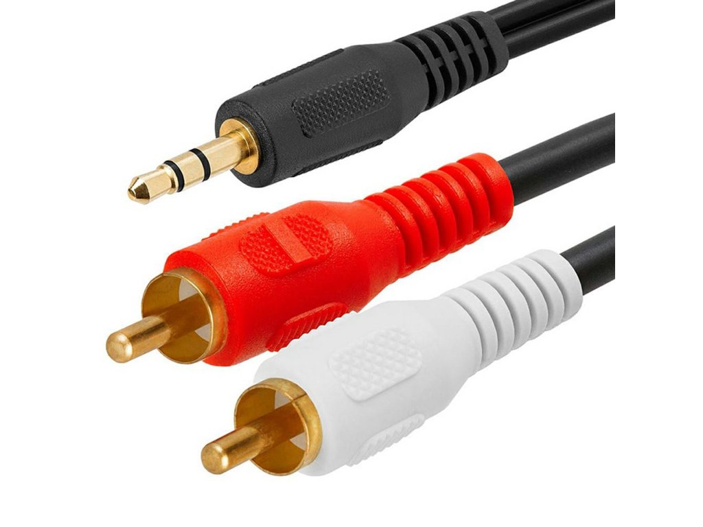 Kabel 2x RCA Cinch - JACK 3,5 mm, délka 1,25 m. Určen pro přenos audio signálů mezi různými zařízeními, např. MP3 přehrávači, televizory, DVD přehrávači, herními konzolemi a audio zesilovači.