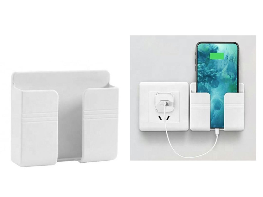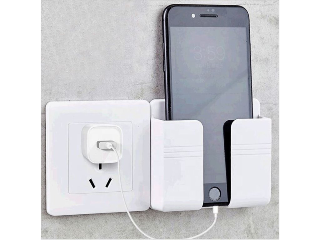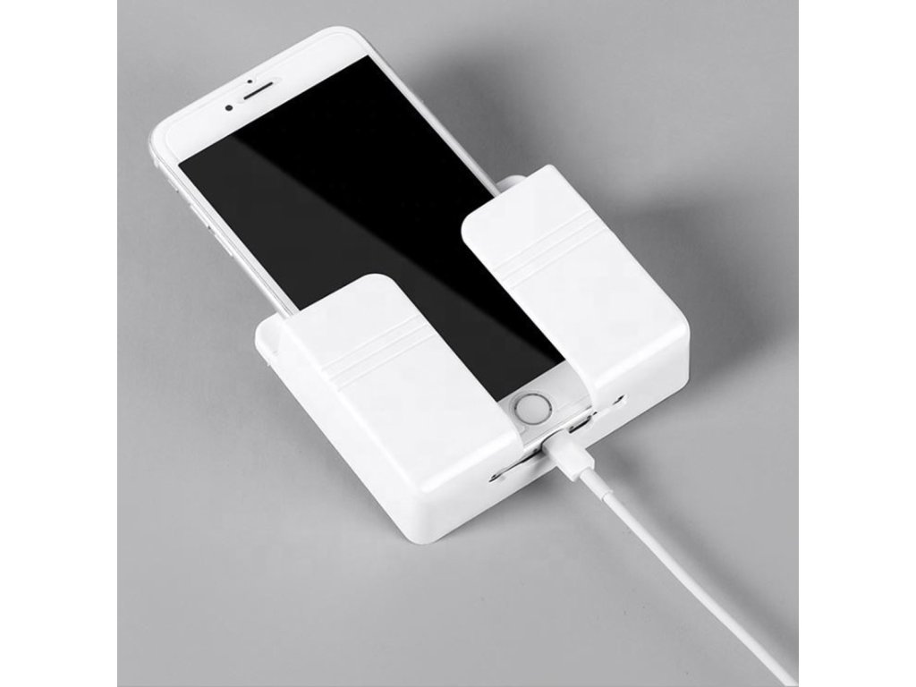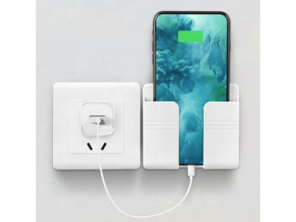 Univerzální, závěsný držák na nabíjení telefonu. Jednoduchá a pohodlná montáž na stěnu. Má speciální slot, který usnadňuje připojení kabelu k nabíjecí zdířce telefonu. Vysoká konstrukce zabraňuje vypadnutí zařízení umístěného uvnitř. Rychlá a snadná montáž na stěnu pomocí oboustranné pásky.