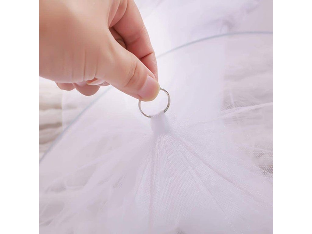 Praktická moskytiéra do postele na ochranu před lezoucím, pobíhajícím a létajícím hmyzem. Má tvar baldachýnu, díky čemuž působí mimořádně esteticky a lépe plní svůj úkol. Je vyrobena z pevného a odolného polyesteru, který účinně chrání i před drobným hmyzem. Chraňte sebe i své děti před dotěrným hmyzem a dopřejte své rodině klidný spánek. Díky obruči, kterou lze zavěsit v různých výškách, hodí se jak do dětské postýlky, tak do postýlky pro dospělé.