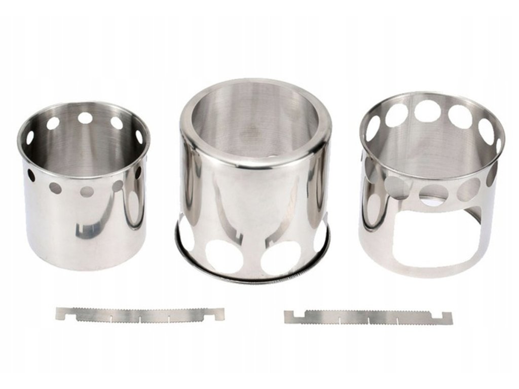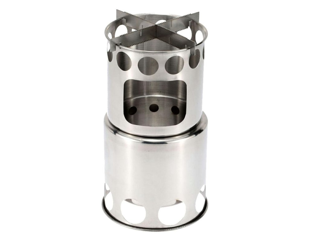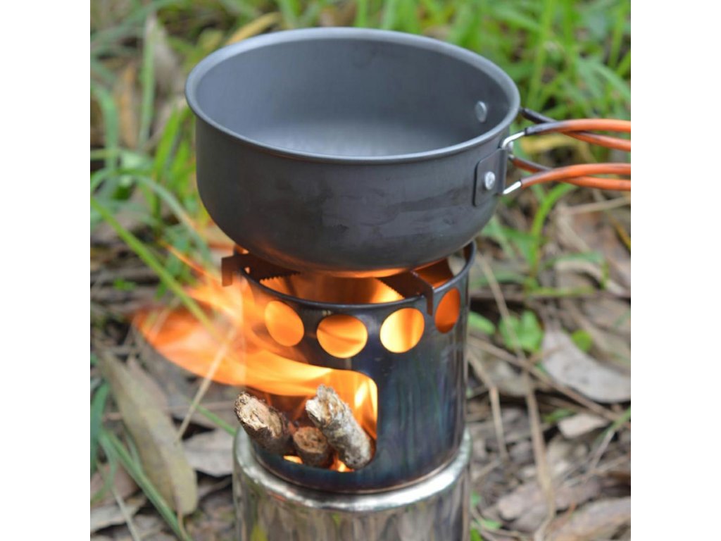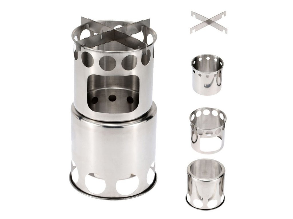Přenosný vařič na dřevo. Je to perfektní řešení, které bude dobře fungovat na výletě v kempu. Pevná nerezová konstrukce zajistí dlouhé a bezproblémové používání. Velký otvor rozhodně usnadní rozdělání ohně a přikládání dřeva. Kovová mřížka nad ohništěm umožňuje pohodlné umístění hrnce nebo kotlíku. Možnost složení výrazně zmenšuje velikost vařiče a usnadňuje jeho přenášení v batohu.