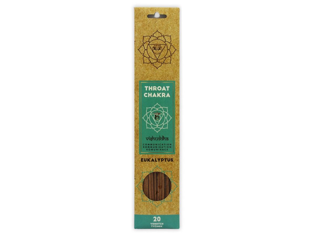 Provoňte svou domácnost vůní eukalyptu. Vyzkoušejte meditovat a relaxovat s doutnající vonnou tyčinkou určenou pro stimulaci Throat Chakra - krční čakry. Vonná tyčinka navodí tu nejlepší atmosféru.