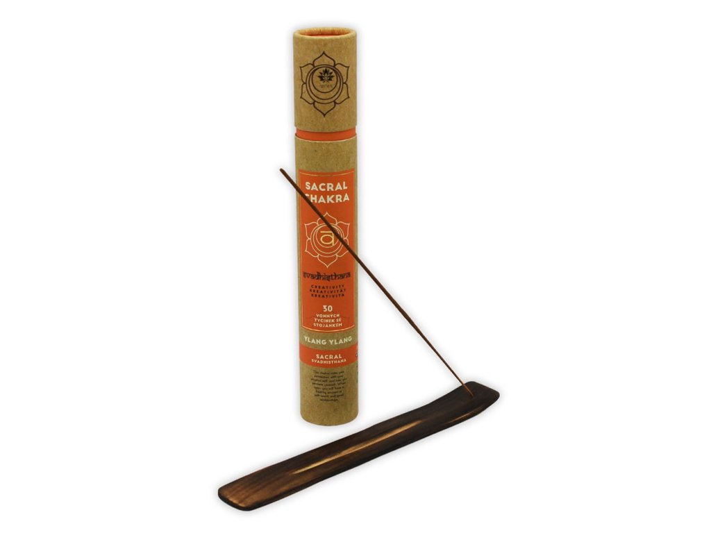 Doutnající tyčinka s nádhernou vůní čerstvě nasbíraných květů tropického stromu Ylang Ylang navodí nevšední výjimečnou atmosféru pro tu nejlepší meditaci a odpočinek a pomůže stimulovat čakru sakrální. Ta se nalézá na páteři, podporuje a energetizuje pánev a všechny její orgány. Kromě toho pracuje se všemi tekutinami v lidském těle.