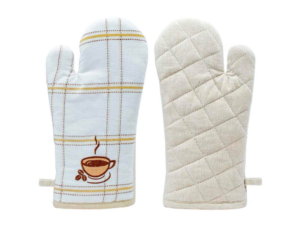 ARÔME HOME Chňapka s magnetem, 18 x 32 cm, Béžové káro, výšivka Káva
