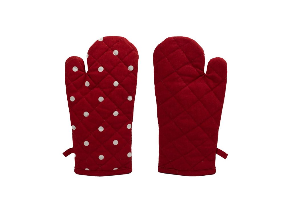 Bavlněná prošívaná chňapka 18*32 cm; Červená s bílými puntíky