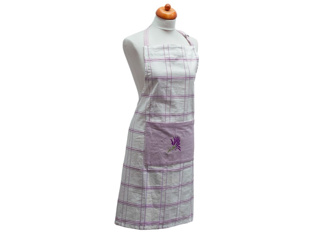 ARÔME HOME Kuchyňská zástěra,Fialové káro,výšivka Levandule