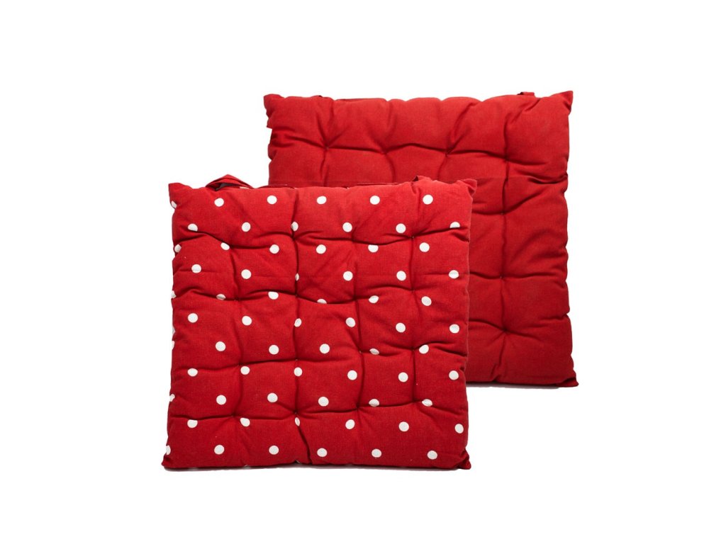 Červený prošívaný podsedák s bílými puntíky rozzáří každou židli. Prošívaný 5 cm vysoký podsedák zajistí pohodlné sezení i na té nejtvrdší židli.