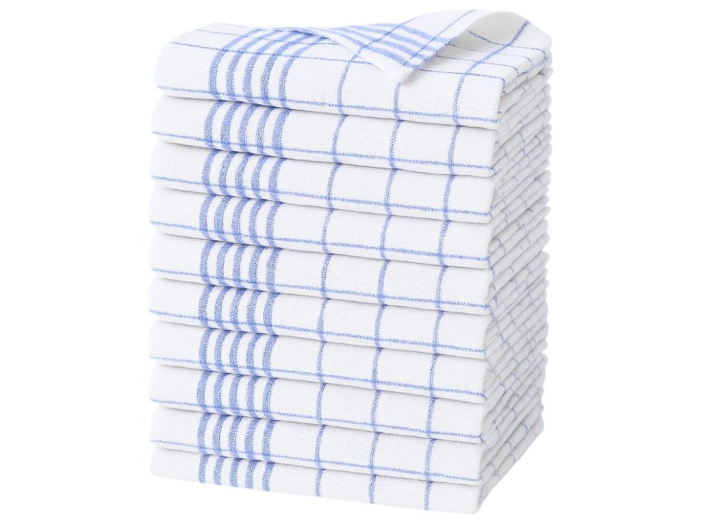 Sada utěrek 10 ks, 100% bavlna, poutko a prací cedulka, v PE sáčku, 20 těchto sad v kartonu, vzor modrobílé káro. Rychloobrátkové zboží za příznivou cenu.