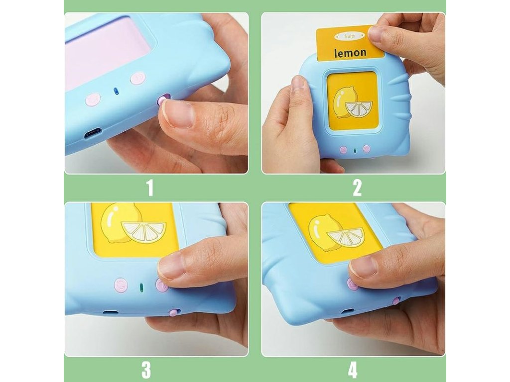 Tato interaktivní elektronická čítačka slov přináší novou úroveň učení jazyků a nabízí bezkonkurenční zábavu a efektivní osvojování slovní zásoby. Čítanka obsahuje 112 oboustranných karet s 224 slovy, rozdělených do 12 kategorií: ovoce, zelenina, jídla, jídlo, zvířata, vozidla, předměty do domácnosti, tvary, šatník, barvy, lidé a povolání (barvy a kategorie karet se mohou lišit od návodu v závislosti na dodávce). Rozměry: 10,5 x 9 x 2 cm. Sada obsahuje: - čtečku karet (napájenou baterií 300 mAh) - 112 karet - nabíjecí kabel micro-USB součástí balení