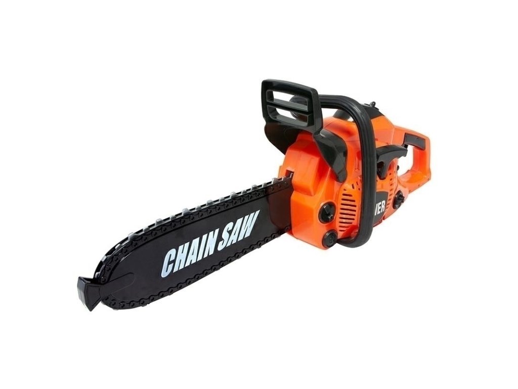 Tato perfektní sada potěší každého malého chlapce, který se bude moci vžít do role dospělého, silného dřevorubce! Chlapeček si bude moci hrát na kácení stromů nebo štípání palivového dříví. Sada je pro děti zcela bezpečná a umožňuje jim volné hraní. Malé černé tlačítko na boku pily ji spustí. Po zatažení za rukojeť vlevo uslyšíte zvuk startování skutečné benzínové pily. Po stisknutí spouště se řetěz namontovaný na vodítku začne otáčet stejně jako skutečná pila a vydává zvuk rotující pily! Malý chlapec se bude cítit jako skutečný dřevorubec! Sada obsahuje: 3x AA bateriovou pilu, helmu, ochranné brýle, rukavice, rozměry pily: 40x15x10cm, vnitřní průměr helmy: cca 15cm, rozměry balení: 57,5x21x15cm. Tato hračka je vhodná pro děti starší 3 let. Produkt je balen v další krabici - připraven k odeslání. Počet kusů na paletě: 72