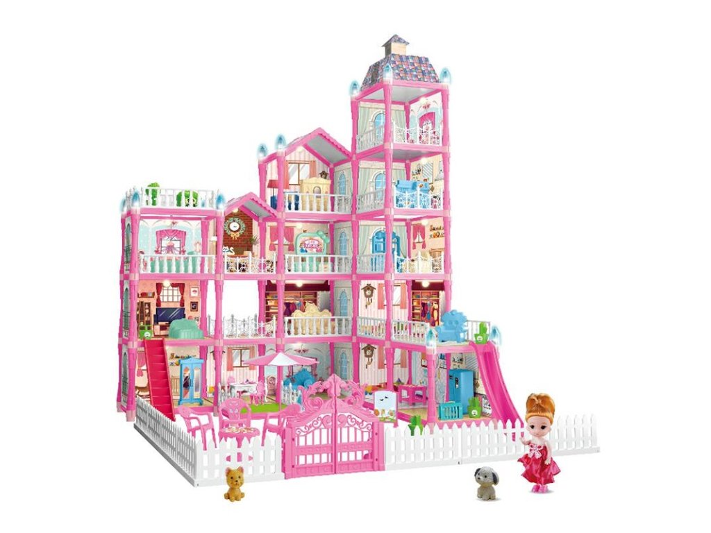 Domeček pro panenky vyrobený z vysoce kvalitního plastu. Vysněný domov pro panenky vašeho dítěte, lze si ho vyzdobit dle libosti. Sada obsahuje 374 dílků, včetně: - panenky - psa a kočky (2 dílky) - nábytku (22 dílků) - doplňků (9 dílků) - komponentů pro sestavení domku (340 dílků) Rozměry domku: cca 80x60x50 cm Rozměry balení: 50x33,5x11 cm Provoz na baterie: 2x AA Hračka vhodná pro děti starší 3 let Množství na paletě: 80 dílků