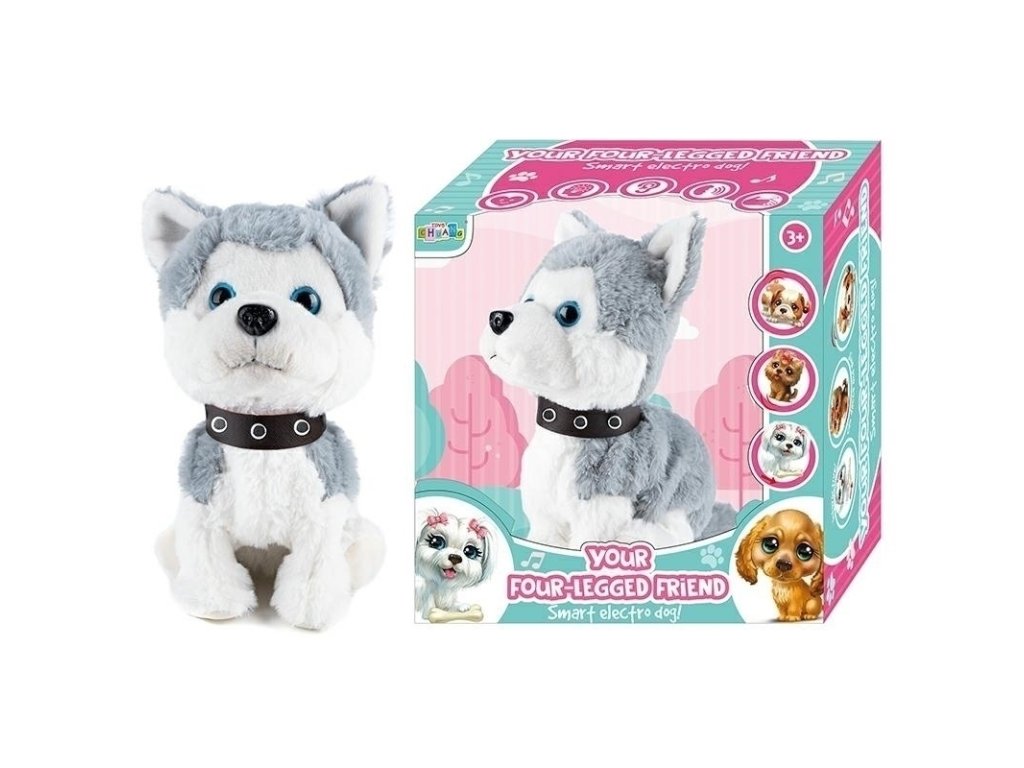 Interaktivní pes, který reaguje na dotek a zvuky. Vlastnosti hračky: - pes ve stojící poloze 28x24x11cm - pes reaguje na dotek a zvuky (např. tleskání) - vydává realistické zvuky: štěká, vrže a dokonce i vrčí - pohybuje se jako skutečný pes - má měkkou srst - ideální k mazlení a pohlazení - hračka je napájena: 4x AA bateriemi (nejsou součástí balení) Reakce psa na hlazení po zádech, hlavě a ocasu a na zvuky: - štěká - kňučí - lehne si na bříško - lehne si na přední tlapky - žebrá předními tlapkami, zatímco sedí na zadních nohách - sedí - čichá Rozměry krabice: 26x26x16cm Produkt balen v další krabici - připraven k odeslání. Počet kusů na paletě: 140