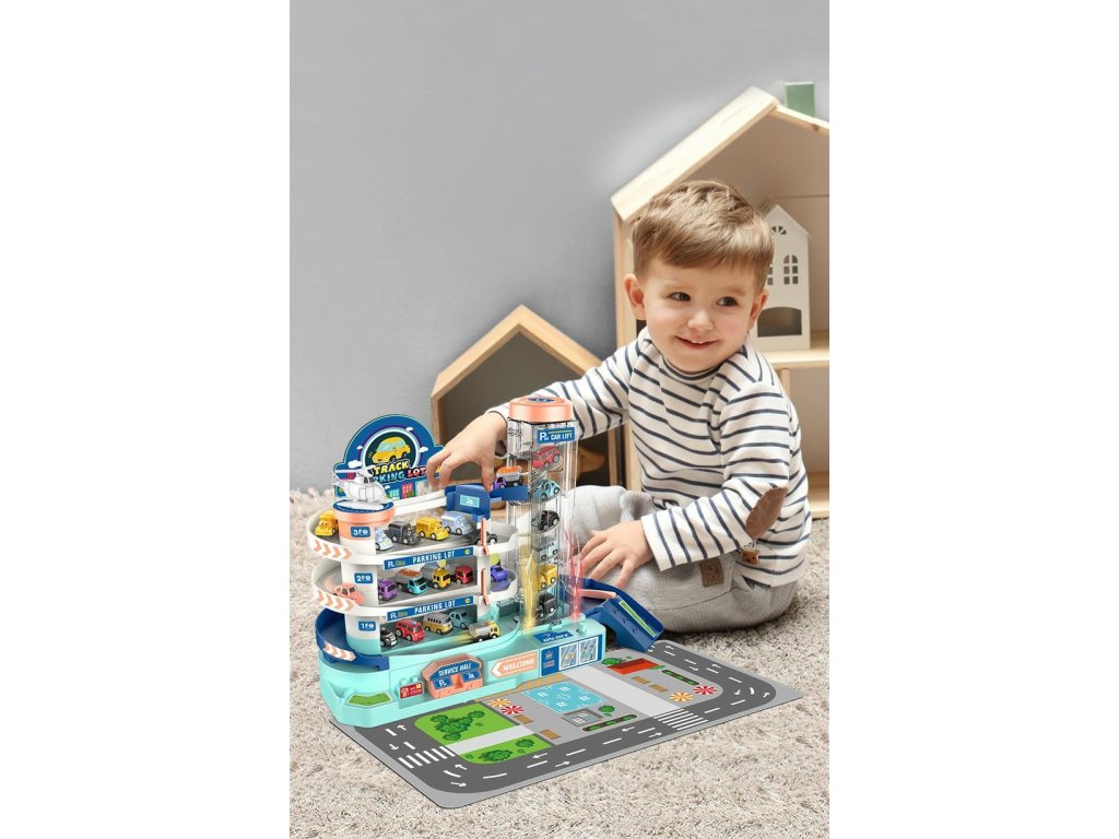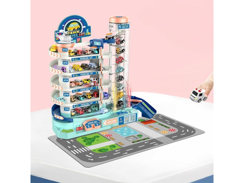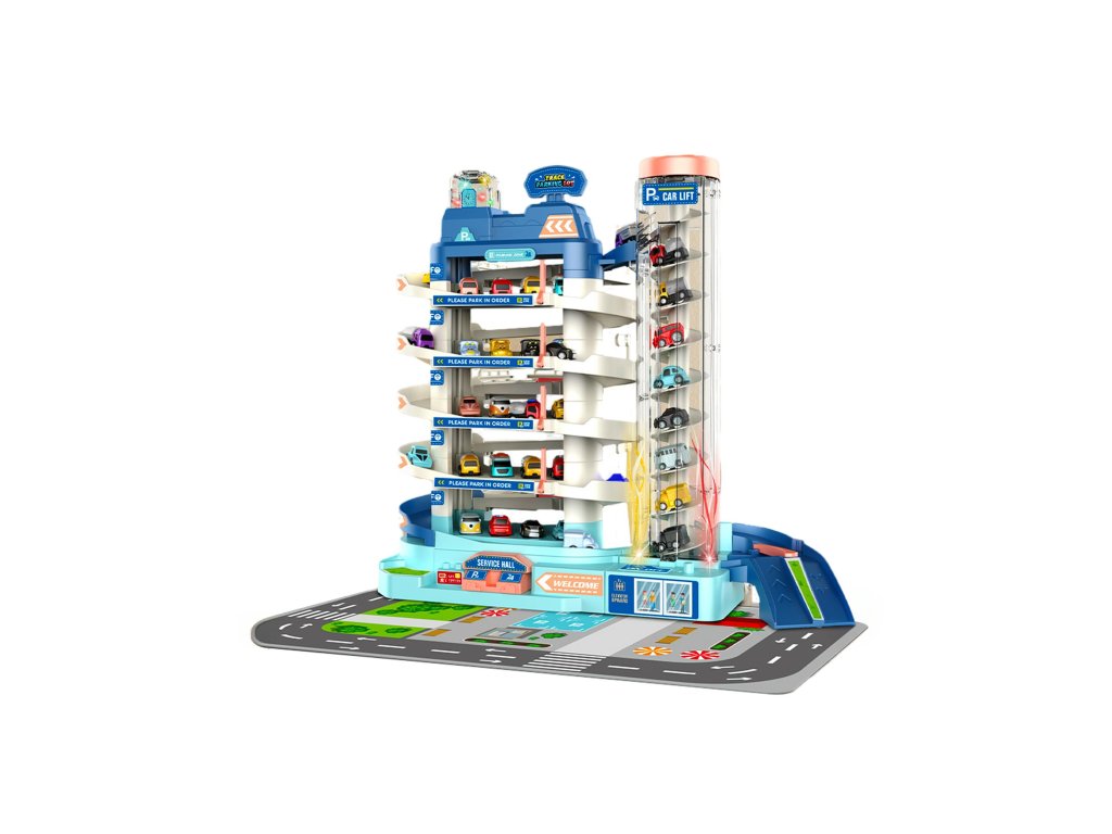 Vícepodlažní parkoviště je herní sada pro děti, která ponoří nejmenší do světa městské logistiky. Sada obsahuje několik parkovacích úrovní, skluzavky a přistávací plochu pro vrtulníky, které jim umožňují vytvářet realistické scény z každodenního městského života. Tato hračka rozvíjí představivost, koordinaci a kreativitu a zaručuje hodiny vzrušujícího hraní. Výtah může být napájen z baterií nebo ovládaný ručně. Sada obsahuje: - parkovací prvky - sadu trychtýře - silniční rohož - šroubovák - 8 figurek strojů - baterii