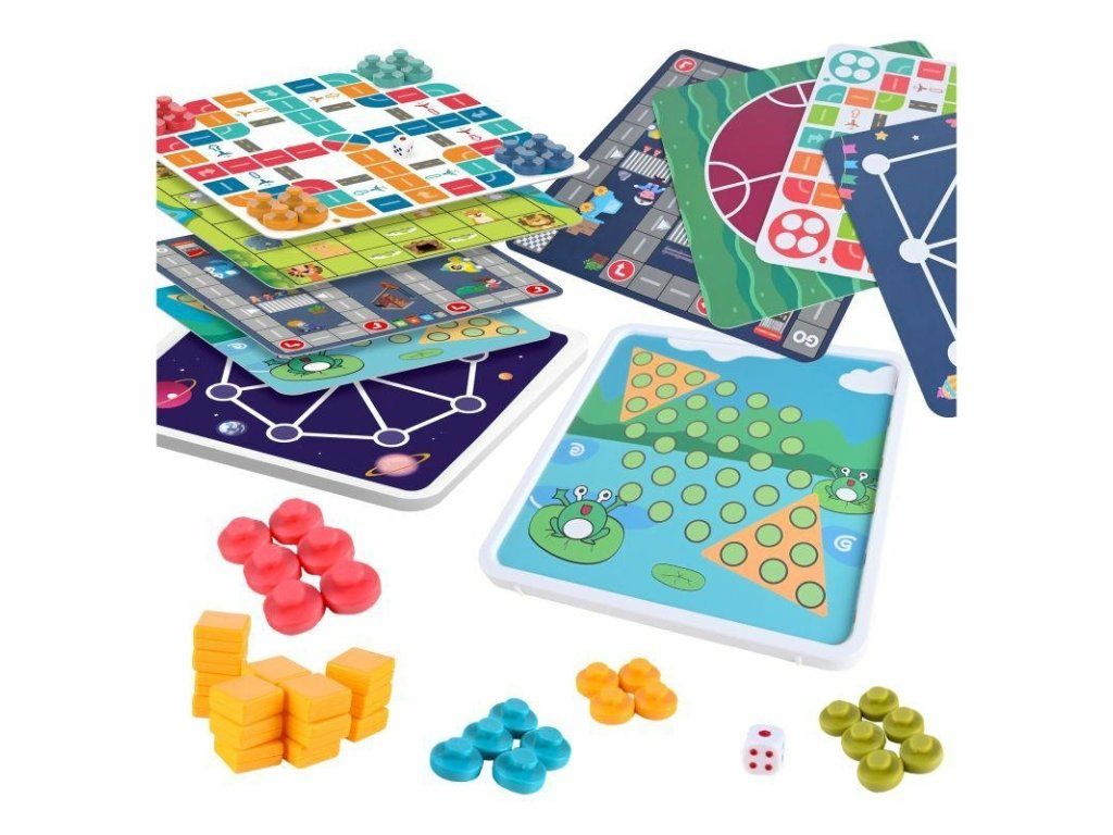 Ne nadarmo jsou deskové hry považovány za jeden z nejužitečnějších nástrojů pro seberozvoj dítěte. Co kdybyste mu mohli dát ne jednu, ale deset her v jedné? Je to dovednostní hra, která pomáhá při učení barev, různých kombinací čísel, geometrických tvarů a dokonce i pravidel pohybu chodců na silnicích. Všechny tyto hry především trénují reflexy a pozorovací schopnosti. Otestujte si svou šikovnost a chytrost s velkou dávkou adrenalinu, skvělé zábavy a výbuchů smíchu. Hru mohou hrát 2-4 hráči. SADA OBSAHUJE: 5 oboustranných herních karet, kostku a pěšce ve 4 barvách: šest pěšců ve dvou barvách, pět pěšců ve třetí barvě a čtyři pěšci ve čtvrté barvě. 16 bloků samolepek TYPY HRY - Letadla - Farmář - Dvojitá dáma - Planetární trojkové šachy - Čtvercové šachy - Tic Tac Toe - Pirátský poklad - Na cestě - Zvířecí šachy
