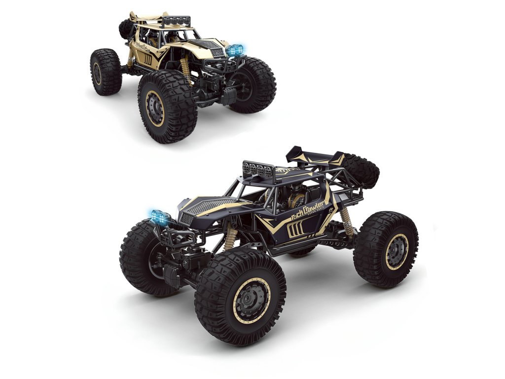 Toto dálkově ovládané terénní vozidlo ve tvaru monster trucku zdolá každou překážku! Velká kola, pevné odpružení a odolná konstrukce poskytují vynikající trakci a odolnost vůči nerovnému terénu. Přesné RC dálkové ovládání dává uživateli plnou kontrolu nad vozidlem a zaručuje vzrušující a realistickou zábavu. Ideální pro venkovní hraní. Sada obsahuje: - RC vozidlo - 7,4V baterii - USB nabíjecí kabel - ovladač - náhradní baterii