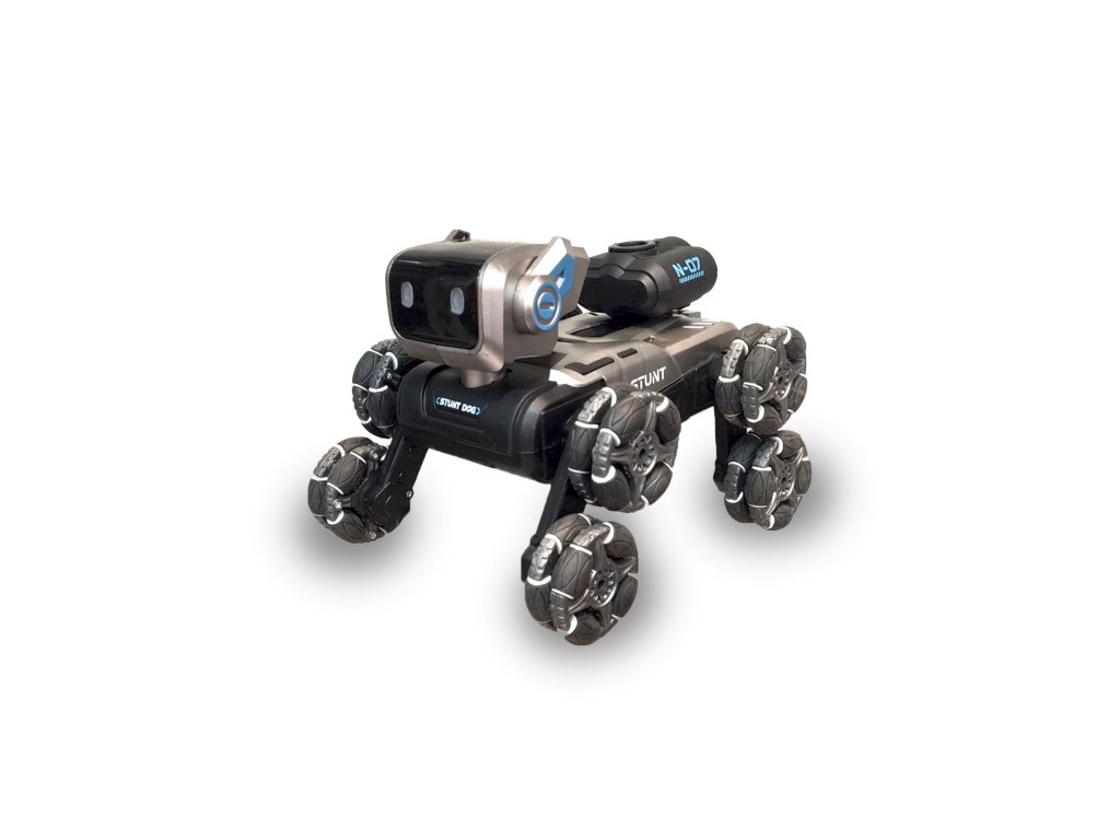 Osmikolové dálkově ovládané robotické vozidlo pro psa, které hraje melodie a tančí. Tato hračka se vyznačuje multifunkčním ovládáním pomocí dálkového ovladače nebo gestového pásku. Nabízí rotaci o 360°, všesměrový pohyb a světelné a zvukové efekty. Vytváří také páru. Součástí balení je dobíjecí baterie a nabíjecí kabel. Sada obsahuje: - robotického psa na dálkové ovládání (25x16x13cm) - dálkové ovládání - gestový pásek - dávkovač vody. Rozměry krabice: 30x19,5x15,5cm. Množství na paletě: 192 ks.