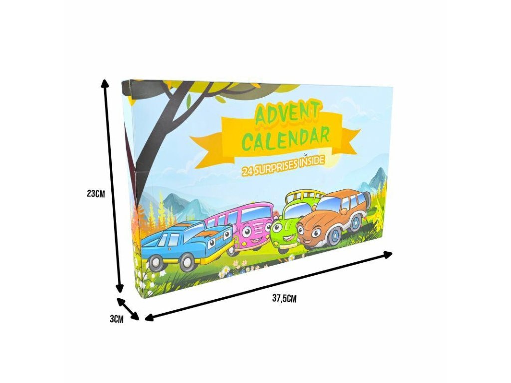 Nechte své dítě objevovat během adventu nová, barevná auta. Kalendář je skvělou alternativou pro rodiče, kteří chtějí, aby si jejich děti v předvánočním období užily zábavu s objevováním nových překvapení. Kalendář je skvělou alternativou ke kalendářům plným sladkostí. Materiál: plast. Rozměry balení: 37,5x23x3cm. 24 autíček s třecím pohonem. Množství na paletě: 400.