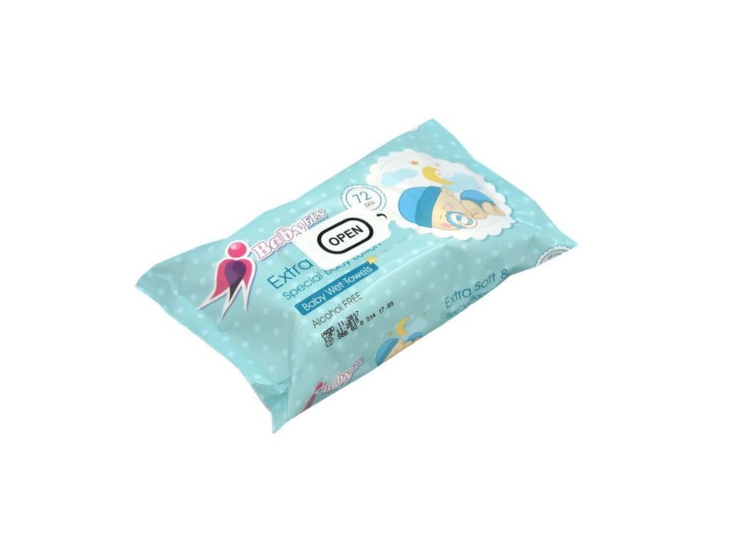 Baby Fin 72 ks dětské vlhčené ubrousky EXTRA JEMNÉ+speciální dětské tělové mléko-fólie