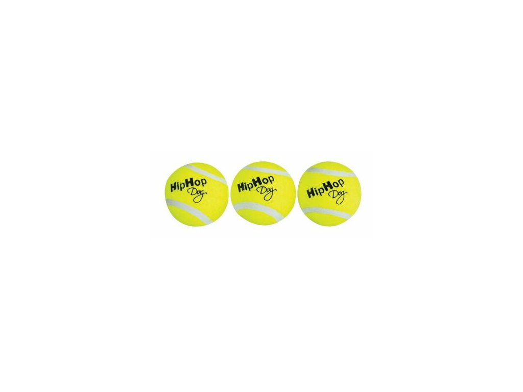 Balení-tenisový míček pískací 5 cm HIPHOP DOG (3 ks v bal.)