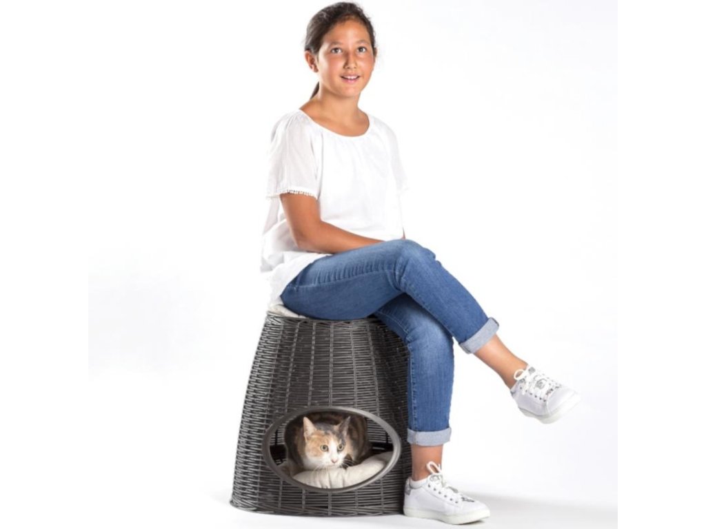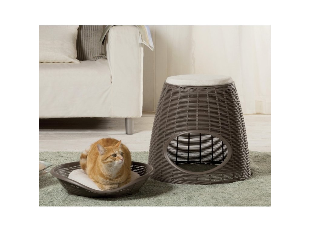 Elegantní uzavřený domeček/bouda ve tvaru kukaně, kde se bude vašim mazlíčkům líbit, kde budou rádi odpočívat a schovávat se. Na vrchní část můžete bezpečně upevnit odnímatelný plastový pelíšek s polštářem, nebo pelíšek snadno přeměnit na pohodlnou stoličku se sedákem s max. nosností 70 kg.