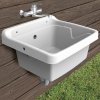 Umyvadlo může být instalováno v garáži, sklepě, na dvoře, zahradě atd. Plastová nástěnná výlevka / umyvadlo 59x50x32cm se sifonem je vhodné také pro koupání menších domácích mazlíčků.