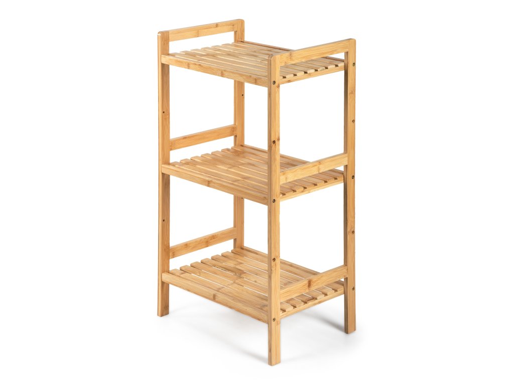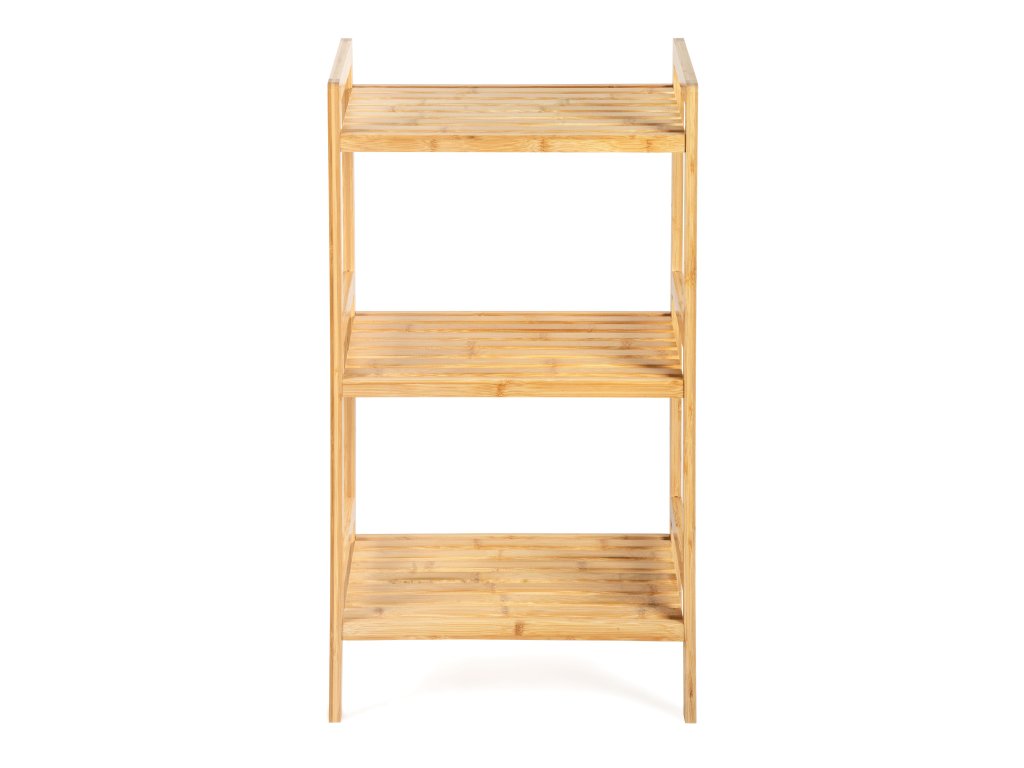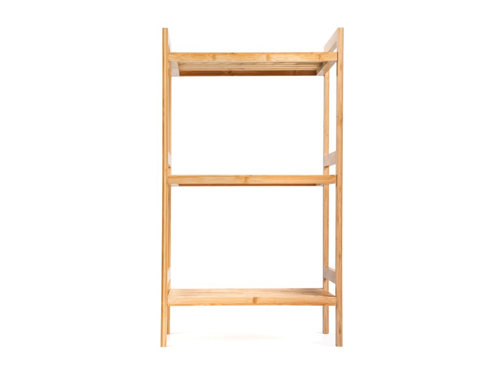 Bambusový regál se třemi policemi dodává interiéru příjemný přírodní dojem, pocit lehkosti a přirozenosti, zatímco jeho pevnost a dlouhá životnost zajišťují stabilitu a trvanlivost.