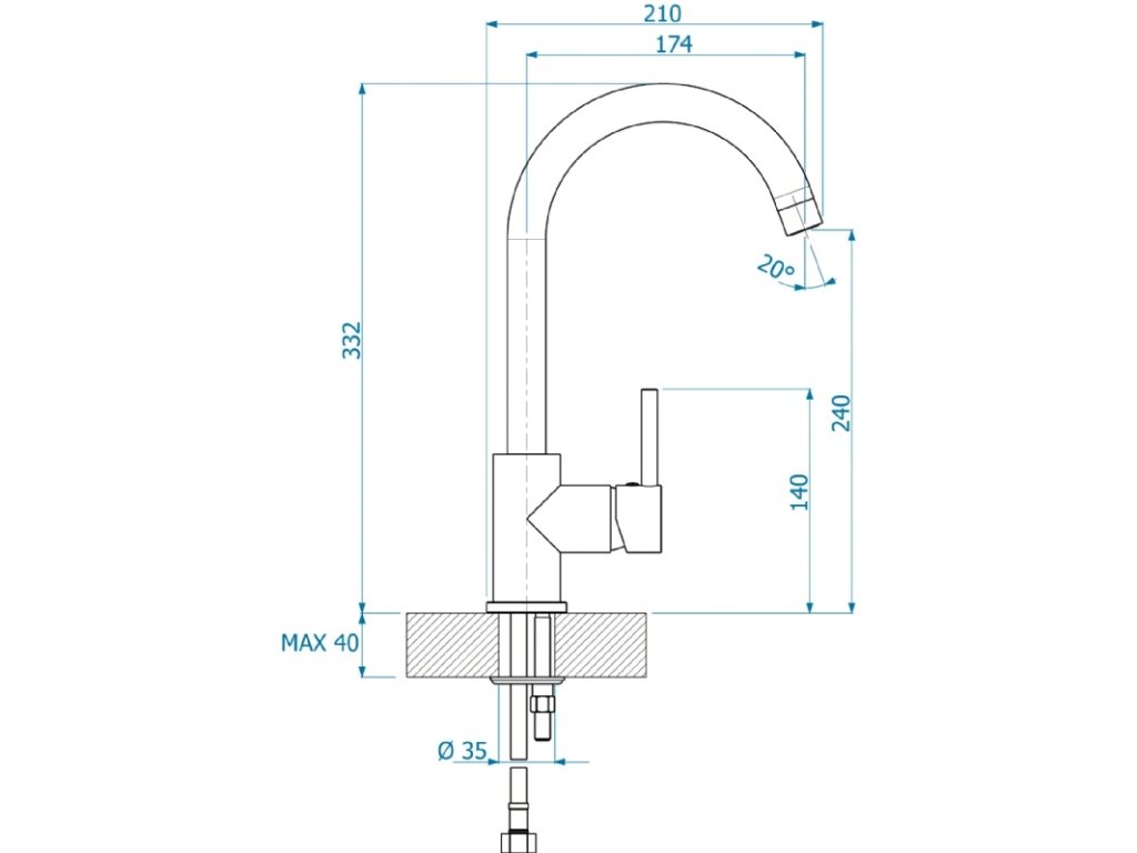Snadná instalace: Baterie je určena pro standardní otvor o průměru 35 mm v dřezu nebo pracovní desce.
