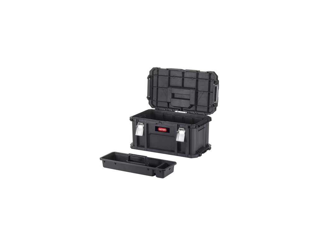 Organizér na drobné nářadí, nosnost 15 kg, objem 29,6 l, tác na nářadí součástí balení, odolné kovové západky pro pevné uzavření, praktická rukojeť pro snadné přenášení.
