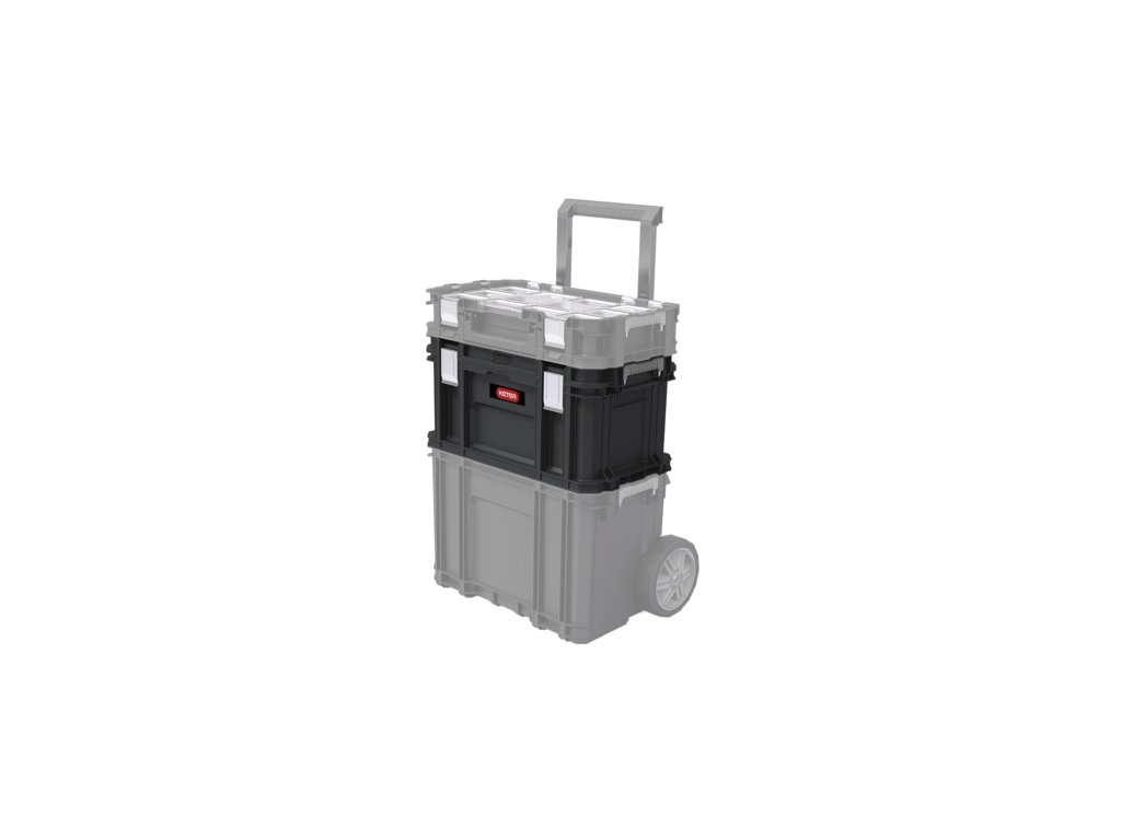 Box Keter Connect využijete pro uskladnění pracovních pomůcek. Uschovejte v něm nářadí a řemeslné potřeby. Kromě toho, že si vše potřebné uložíte do vnitřní části boxu, můžete použít také šikovný tác. Vyskládejte na něj metr, vodováhu, šroubky a další drobné náčiní. Pomůcky snadno najdete a máte vše po ruce, kdykoliv potřebujete.
