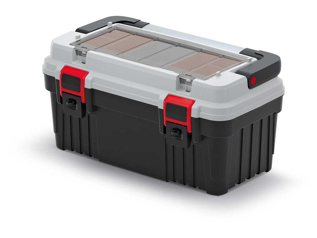 Přehledné uspořádání: Více přihrádek a vnitřních oddělovačů umožňuje snadné uspořádání nářadí podle velikosti a typu.