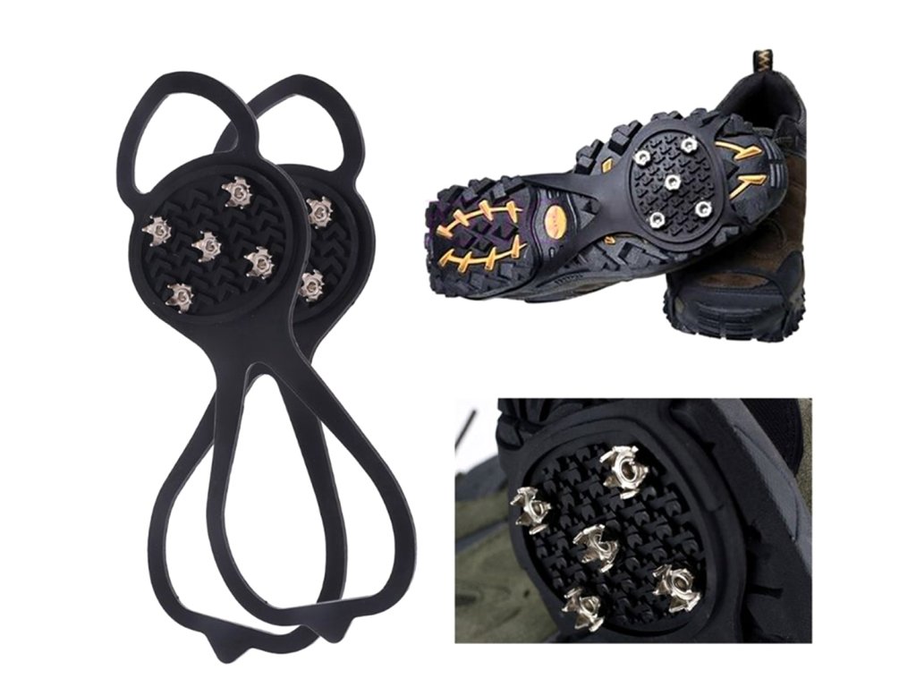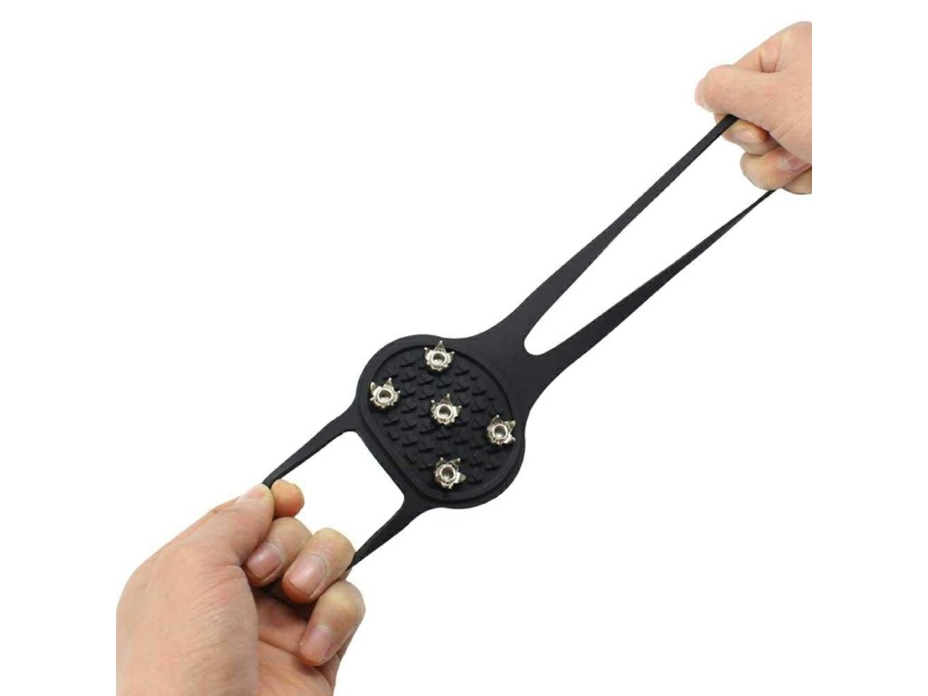Flexibilní, protiskluzové návleky na boty s hroty, vybavené kovovými hroty! Jsou ideální pro turistiku v lesích a horách, stejně jako trekking v obtížném terénu a povětrnostních podmínkách. Účinně chrání před uklouznutím a pádem, a to díky použití 5 háčků z tvrzené oceli. Neunavují nohy, jsou velmi lehké! Dobře se přizpůsobí tvaru boty! Díky použití silikonu je lze přizpůsobit botám několika velikostí (40-46), aniž by hrozilo uklouznutí.