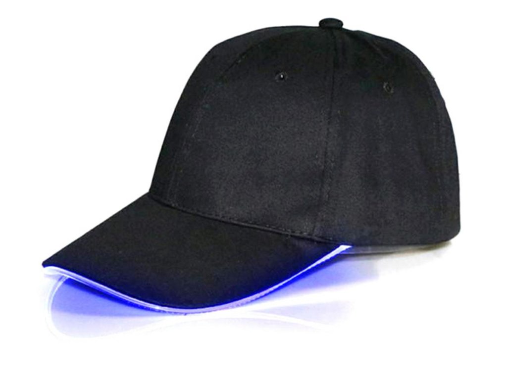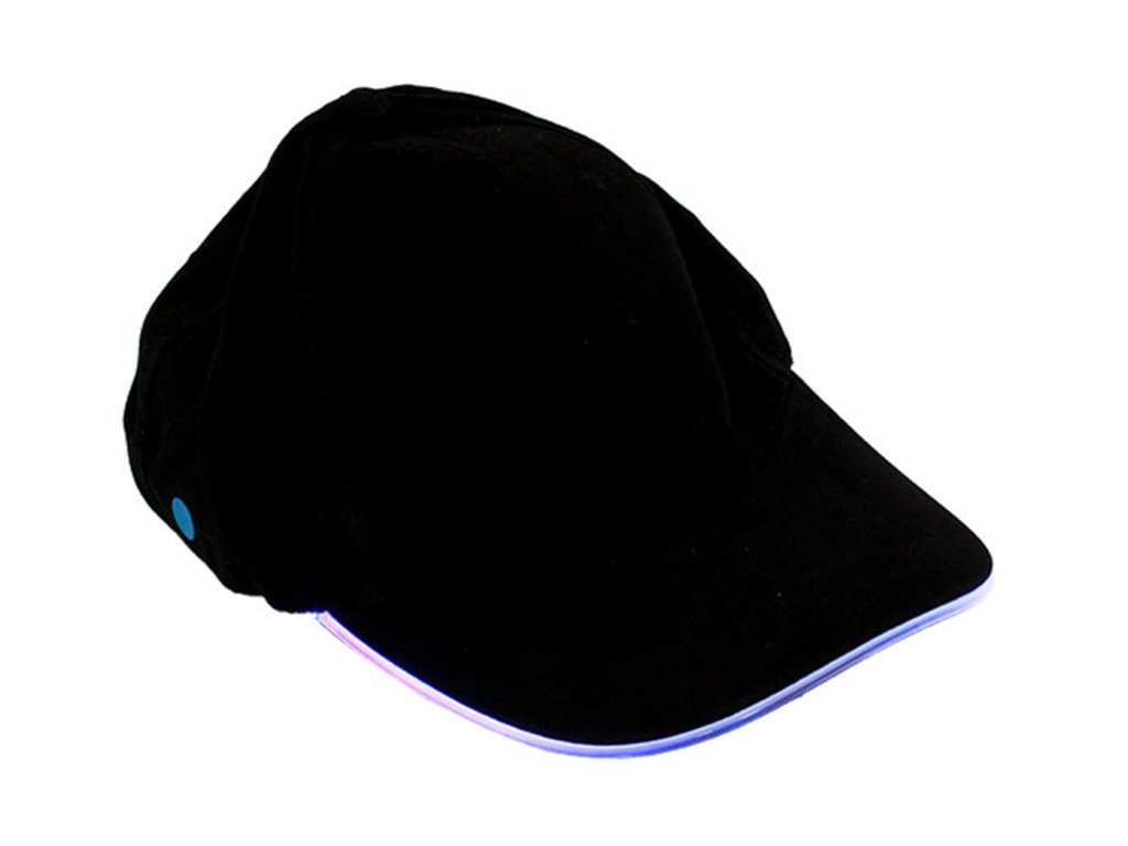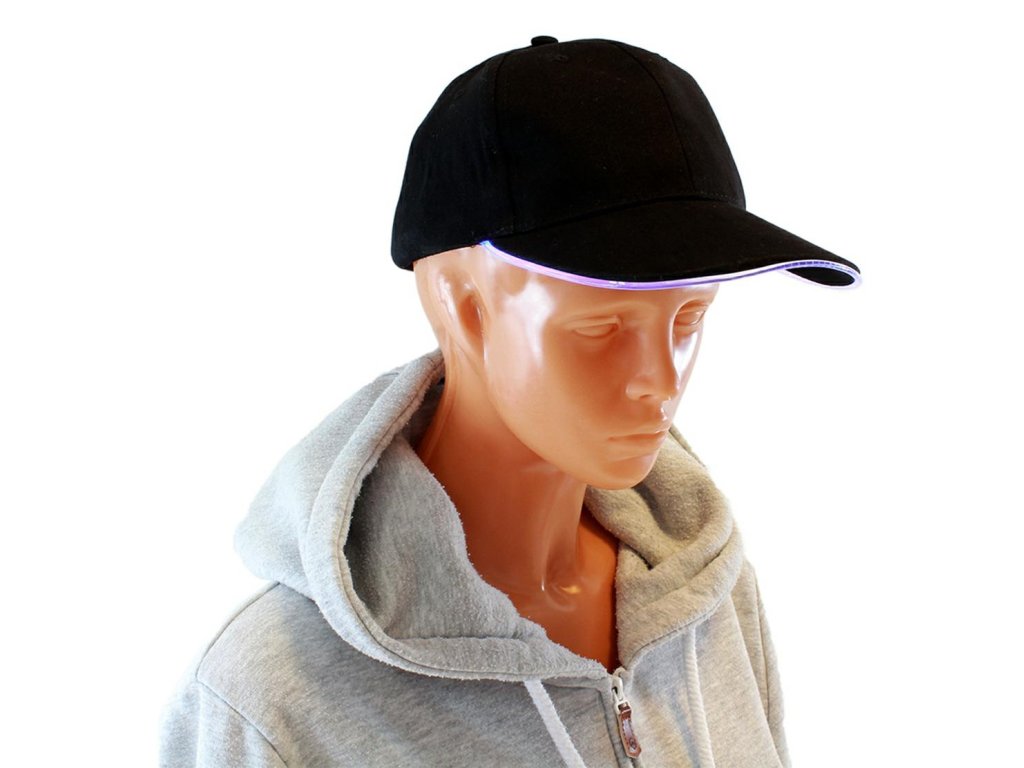 Kšiltovka/baseballová čepice s modrými LED diodami. Perfektní vychytávka pro usnadnění večerních procházek, aniž byste museli brát ruce s klasickou baterkou. Dobrá a energeticky úsporná alternativa k těžké čelovce nebo klasickým světelným zdrojům!