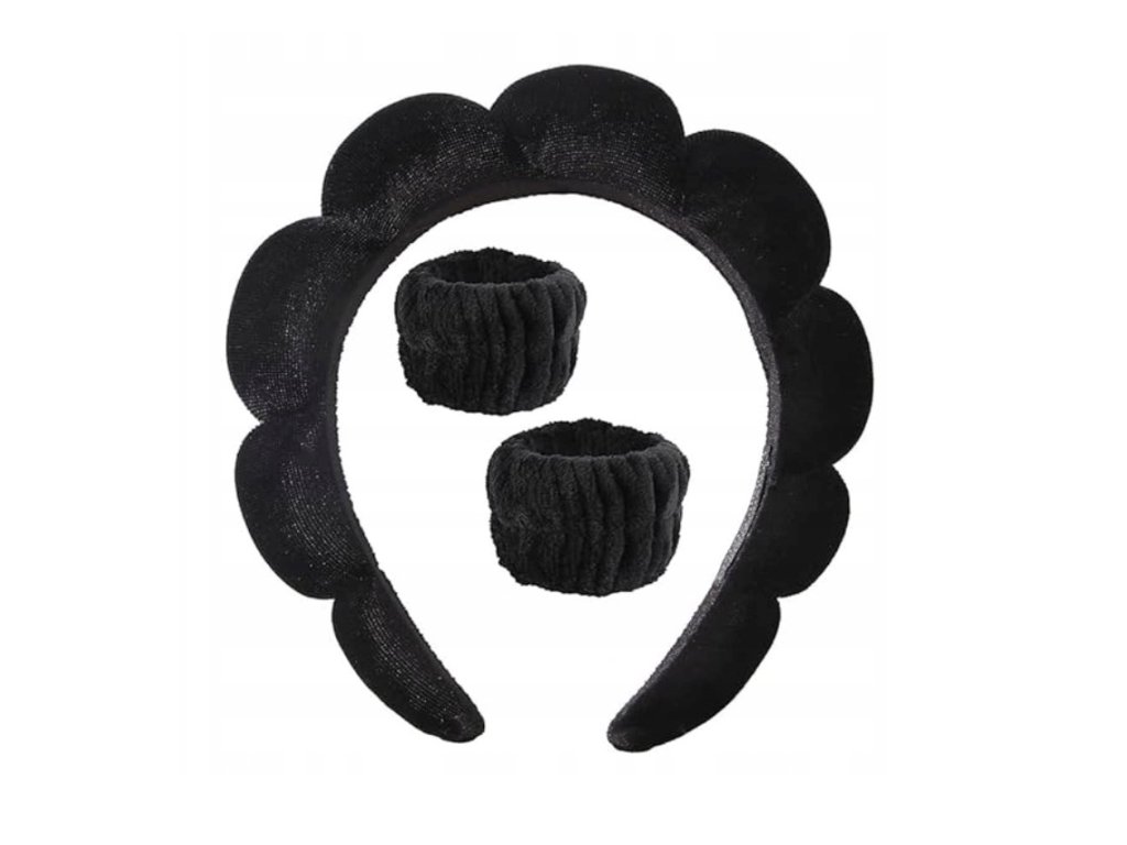 Čelenka a náramek jsou praktickou sadou, která usnadňuje každodenní péči a nanášení make-upu. Pohodlná čelenka efektivně drží vlasy a elastické náramky zabraňují stékání vody při mytí obličeje. Vyrobeny z měkkého, příjemného materiálu na dotek, zaručují pohodlí a hygienu používání.