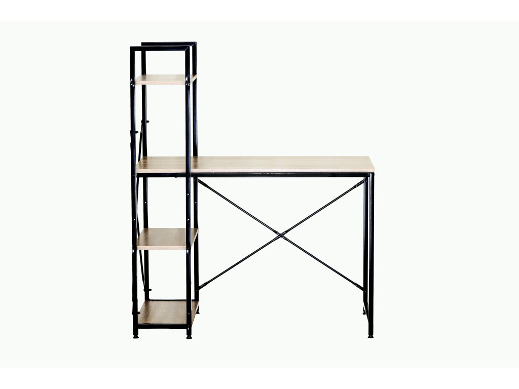 Tento moderní stůl s integrovanými policemi je perfektním řešením pro domácí kancelář, pokoj pro mládež nebo pracovnu. Disponuje prostornou pracovní deskou a třemi funkčními policemi na knihy, dekorace nebo nádoby na doplňky. Jeho robustní kovová konstrukce a povrchová úprava s efektem dřeva mu dodávají elegantní a všestranný charakter. ROZMĚRY: 100x52x120 cm. Maximální nosnost stolu: 50 kg. Maximální nosnost police: 5 kg.