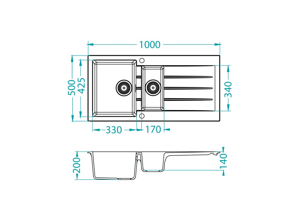 Provedení : granitový jednodřez s malou vaničkou a odkapem