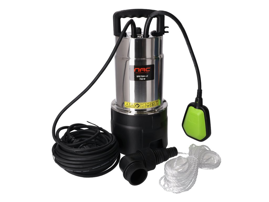 Výkonné ponorné kalové čerpadlo NAC SPE75HI-L2 s nerezovým pláštěm si poradí i s náročným čerpáním znečištěné vody. Díky průtoku až 15 000 l/h a příkonu 750 W je ideální na odčerpávání vody ze sklepů, jímek či zahradních nádrží.