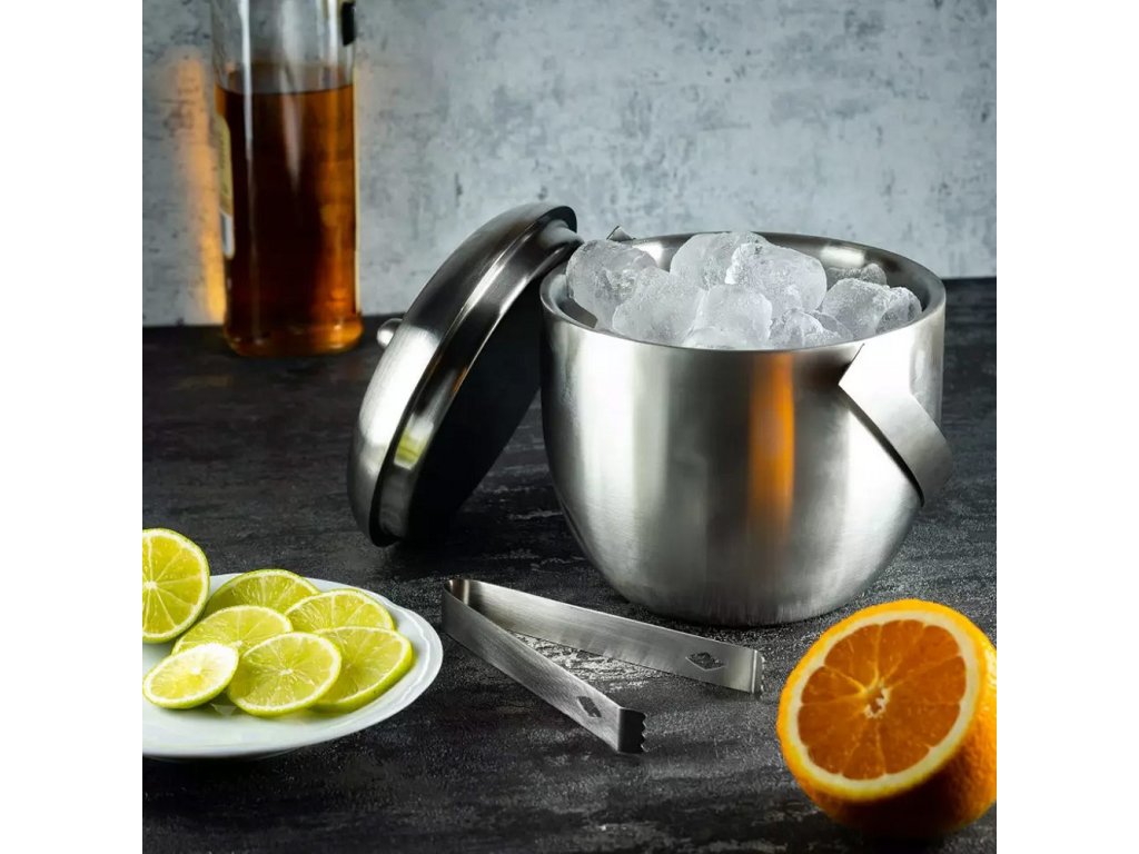 Uchovejte led dlouho chladný a servírujte ho snadno s tímto kbelíkem na led z vysoce kvalitní nerezové oceli. Praktická dvojitá stěna s víkem zabraňuje rychlému tání ledu a udržuje nápoje svěží. Součástí balení jsou kleště, které umožňují hygienické a pohodlné podávání ledu.