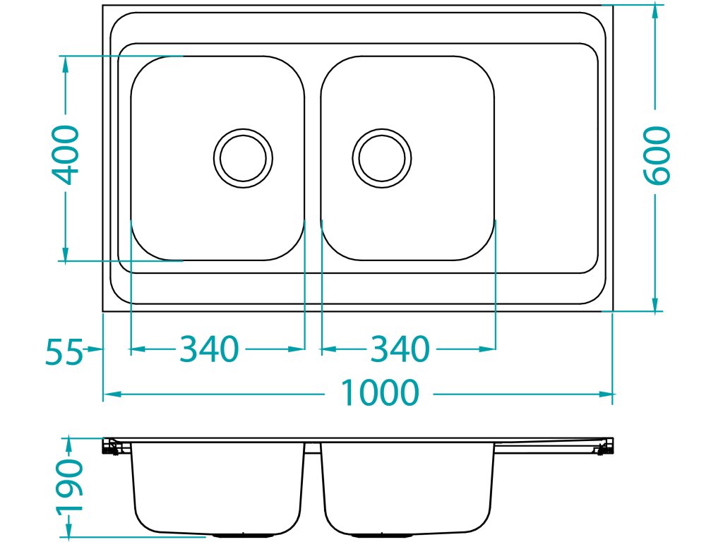 Nástavný dřez Provedení : SAT Vyrobeno z nerezové oceli CrNi 18/10 Vnější rozměr: 1000x600 mm Rozměr vaničky: 340x400x190 mm 340x400x190 mm Odtoková souprava s přepadem a 3 1/2 sítkem Úchyty a těsnění pro upevnění dřezu v balení Bez otvoru pro baterii Návod pro instalaci v obrázcích na obale Instalace do skříňky o šířce 800 mm Váha:9,5 kg