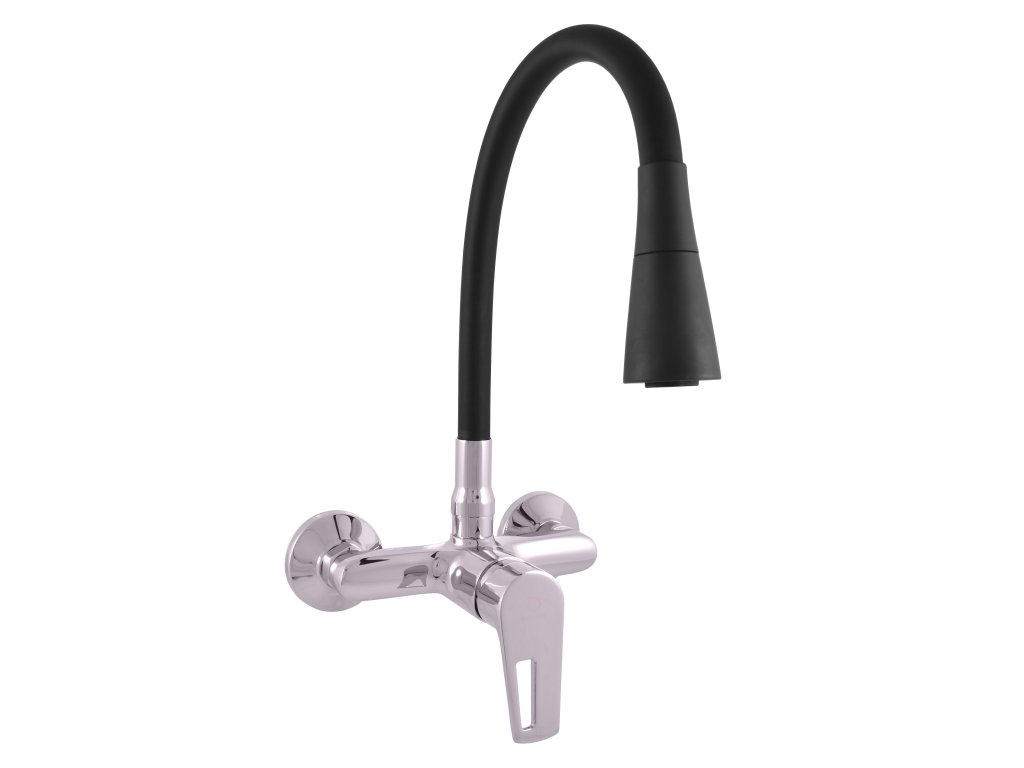Vodovodní baterie dřezová nástěnná s flexibilním otočným ramínkem se sprchou.