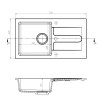 Vestavěný dřez, UNIVERZÁL Provedení : granitový dřez s odkapem Vnější rozměr: 750x420 mm Rozměr vaničky: 347x348x140 mm Excentrický sítkový ventil 3 1/2 s přepadem, sifon pro úsporu místa s odbočkou na myčku. S otvorem pro baterii Návod pro instalaci v obrázcích na obale Instalace do skříňky o šířce 500 mm